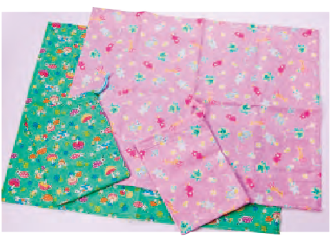 ランチョンマットに、同じ柄の袋をセットしました。通学児童の給食用や家庭の食卓ではもちろん、多様に使い回しができる気の利いた一品です。