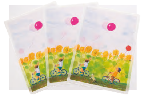 障がい者アート専門の芸術ライブラリー「アートビリディ」に登録されている大志田洋子さんのアート作品「真夏の少年」を、クリアファイルに使用しました。