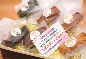 米粉を使用したクッキーやケーキ、大豆粉を使用したケーキ、糖質オフのクッキーや ケーキ等を作成しています。中でも大豆ケーキは味も6種類と豊富で、しっとりした味わいが特徴です。1個でたんぱく質を6g以上摂ることができます。